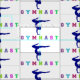 Gymnaste Colorful Letters Tissu avec une fille faisant une pose de gymnastique à la main.