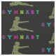 Gymnaste Colorful Letters Tissu avec une fille faisant une pose de sol de gymnastique.