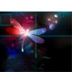 Lumineuse, volante, libellule rouge, avec des ailes transparentes et détaillées sur arrière - plan sombre, nocturne, lumineux avec plantes tropicaux et lucioles. libellule rouge.