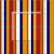 Ce design est composé d'un motif de rayures aux couleurs orange, rouge, bronzé, blanc et bleu.