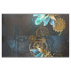 Luciole à vapeur avec ailes bleues transparentes et ampoule verte sur arrière - plan usé, marron, texturé. Style Steampunk.