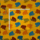 Tissu Mammoths laineux orange, bleu, or, motifs