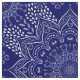 Tissu de mandala bleu Indigo avec un design élégant en dentelle de fleurs de lotus qui est décoré avec des éléments fantaisistes.
