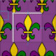 Tissu avec motif sans soudure avec fleur de lys aux couleurs de Mardi Gras à la Nouvelle-Orléans ; design violet, doré et vert sur arrière - plan violet