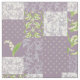 Un tissu chic, avec un motif de patchwork de Faux des motifs et des motifs du muguet sur un arrière - plan mauve pâle. Une partie "pour l'amour de la collection snob et Painterly de lis".
