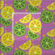 Tissu mauve tranché, en quarts de citrons et de li