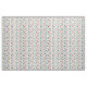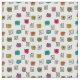 Ce tissu a un design moderne du milieu du siècle de maçonnerie dispersée, certains avec des lobs colorés sous eux.