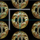 Impression unique d'un médaillon asiatique doré par Vision Studio. Un arc-en-ciel aux couleurs automnales caresse l'oeil, donnant au médaillon une sensation chaleureuse contre l'arrière - plan noir. Obtenez votre copie aujourd'hui !