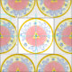 tissu motif inspiré par des motifs floraux méditerranéens, créé en 1993 pour un design motif de porcelaine, ces médaillons floraux aux allures de table sont centrés les uns sur les autres - art de Kristie Hubler, motif appelé "Passion Lumière", pour une assiette - couleurs rose, bleu, crème, jaune, or