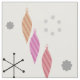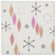 Un design rétro de l'ère atomique avec un thème de Noël. Il présente des flocons de neige argentés et des ornements de Noël rouges, oranges et violets.