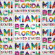 Un motif de texte décoratif coloré unique Miami Beach, Floride, États-Unis. Beau morceau de tissu pour n'importe qui. Si nécessaire, utilisez l'option "Customiser" pour positionner l'image sur un produit ou changer la couleur de l'arrière - plan. Profitez, achetez-en un, amusez-vous et soyez heureux. #peace #love #GoodVibes #color #text #typography #fabric #craft