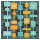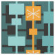 Un motif moderne simple mais coloré, moderne et moderne de milieu de siècle avec des carrés, des rectangles et des lignes. Turquoise, jaune et orange contre un arrière - plan vert turquoise.