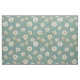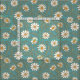 Motif mignon de marguerites blanches et jaunes avec des accents de feuilles d'or et de tiges sur un arrière - plan turquoise/bleu.