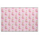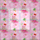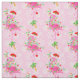 Flamands roses de Noël aux lampes à cordes et chapeau de Père Noël sur un arrière - plan rose aux flocons de neige et aux palmiers à la décoration festive. Montré ici sur tissu personnalisable. Vous pouvez facilement redimensionner le motif à votre préférence et sélectionner votre couleur arrière - plan préférée. C'est un mignon motif pour créer votre propre projet artisanal ou de couture avec une ambiance tropicale de Noël !