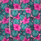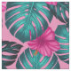 Tissu Monstera feuilles et Hibiscus Turquoise et rose su