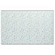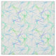 Toile styliste aux cheveux blancs avec un motif ciseaux éparpillé dans différentes nuances de bleu et vert.