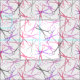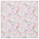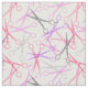 Tissu styliste aux cheveux blancs avec un motif ciseau éparpillé en rose, violet, violet et gris.