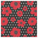 Motif rouge gras sur un arrière - plan pois noir et blanc. Design élégant, joli et contemporain.