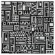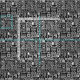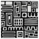 Un motif abstrait attrayant et détaillé, composé de différents carrés dessinés à la main, rectangles, spirales et zig-zags inspirés de l'art abstrait du milieu du siècle.