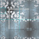 Elégant motif géométrique gris-bleu cerisier en fleurs.