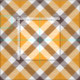 Ce tissu en coton moderne est orné d'une motif plaid tendance orange, marron et blanc.