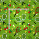 Tissu à motif sportif avec raquettes de tennis, balles de tennis et fraises d'été sur un arrière - plan vert herbe