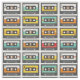 Drôle tissu coloré de cassettes de musique rétro sur blanc