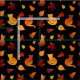 motif de chats gingembre silhouette et feuilles d'automne en orange brûlé, jaune et rouge, sur un arrière - plan noir. Un design génial pour une maman de chat qui aime coudre.