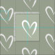 Design de tissu moderne et élégant avec un design de motif de coeurs blancs placé sur un arrière - plan gris-vert. Parfait pour les projets artisanaux, la mode, la décoration maison comme la couverture de couette et les coussins, rideaux et plus. Design par Inge Lewis. Trouvez d'autres articles correspondants dans le magasin ingeinc.com.