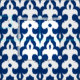 Le motif inspiré marocain de damassé de fleur-De-lis positif/négatif de verrouillage forme avec une texture - bleu de cobalt profond et un tissu striés et par Ikat tissés de blanc