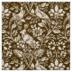 Tissu dans un William Morris, papier peint Art Nouveau design de faisans et lièvres sertis entre feuilles, vignes et fleurs - beige sur un arrière - plan chocolat