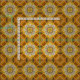 Tissu de terre d'automne tissu de peuplier polyester avec motif mandala abstrait très complexe créé à partir de la photo d'automne de grands, minces, atteignant les érables et leur feuillage doré et rouge-orange contre un ciel bleu clair - une inspection minutieuse du motif révèle les branches d'arbre feuillu contre le ciel bleu - mandala centre est un soleil minuscule dont divers éléments géométriques rayonnent en cercle, étoile 8 points, octogone et cross - thème couleur automne orange/or/marron/bleu - par katz_d_zynes