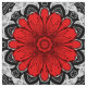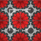 Tissu dans un motif de marguerite géométrique en rouge profond / cramoisi sur un arrière - plan à motif noir et blanc