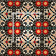 Design de tissu unique moderne avec un motif en mosaïque sans coutures, aux formes géométriques en noir, rouge, orange et beige.