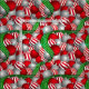 motif de Noël festif fait de décorations comme des boules rouges et rayées et un ruban rayé vert. Entrez dans la saison des Fêtes avec ce motif joyeux !