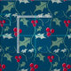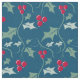 Festive feuillage d'hiver feuillage à motifs avec des feuilles saints en baies d'hiver gris-vert et rouge vif sur un arrière - plan bleu foncé. Art graphique original et design par Sarah Trett pour www.mylittleeden.com
