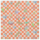 Un dessin de motif des perruches dans le style mignon de manga avec le motif orange de contrôleur pour l'arrière - plan. Comporter beaucoup de couleurs de mutation de perruche : vert, jaune, blanc, bleu, violette et mauve.
