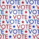 Tissu de vote avec VOTE écrit en lettres propres en rouge et bleu contre un arrière - plan blanc.