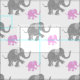 Ce bel étoffe présente un motif moderne simple d'un mignon petit éléphant gris et rose avec des troncs et des pieds remontés avec joie.