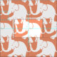 Cette belle étoffe présente des rangées diagonales de petits éléphants blancs qui se chevauchent, avec des troncs et des pieds remontés avec joie sur un sol saumon.