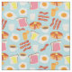 Les agrafes de petit déjeuner comme le jambon, le jus d'orange, un oeuf d'ensoleillé-côté-, le pain grillé, le café, et le lard composent ce motif illustré délicieux.