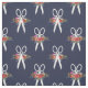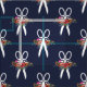 Tissu de bleu marine avec un motif des ciseaux blancs fleur-ornés.