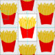 Le French Fries Motif Fabric, conçu par Enchantfancy Design Company, présente un motif de contenants de frites rouges de type fast-food remplis de frites jaunes.