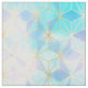 Les formes géométriques des cubes sont superposées en motif et colorées dans des tons alternés de bleu pastel, rose et violet qui lui donnent un aspect de verre irisé. Les formes sont dessinées dans une parties scintillant en faux or.