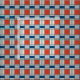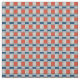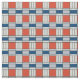 Ce tissu coloré présente un motif géométrique rétro en rouge, bleu, gris clair et noir.