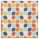 Cette motif moderne du milieu du siècle présente des formes géométriques orange, turquoises et turquoises.
