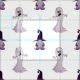 Gnome d'Halloween mignon habillé en violet et casquette de sorcière avec araignée et blanc, éffrayant, fantômes effrayants. Créé en un motif transparent. Vous pouvez modifier l'arrière - plan dans les outils de conception.