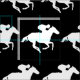 Motif de cavalier galopant sur arrière - plan noir. Un cadeau parfait pour les passionnés de cheval! Jockey - une personne qui fait des courses de chevaux, surtout comme profession.