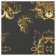 Un motif en tissu très élégant avec de grands ornements en or métallique, épais, avec des feuilles ornés et des tourbillons, dispersés sur un arrière - plan noir.