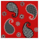 Tissu Motif Paisley, rouge profond, noir et blanc
